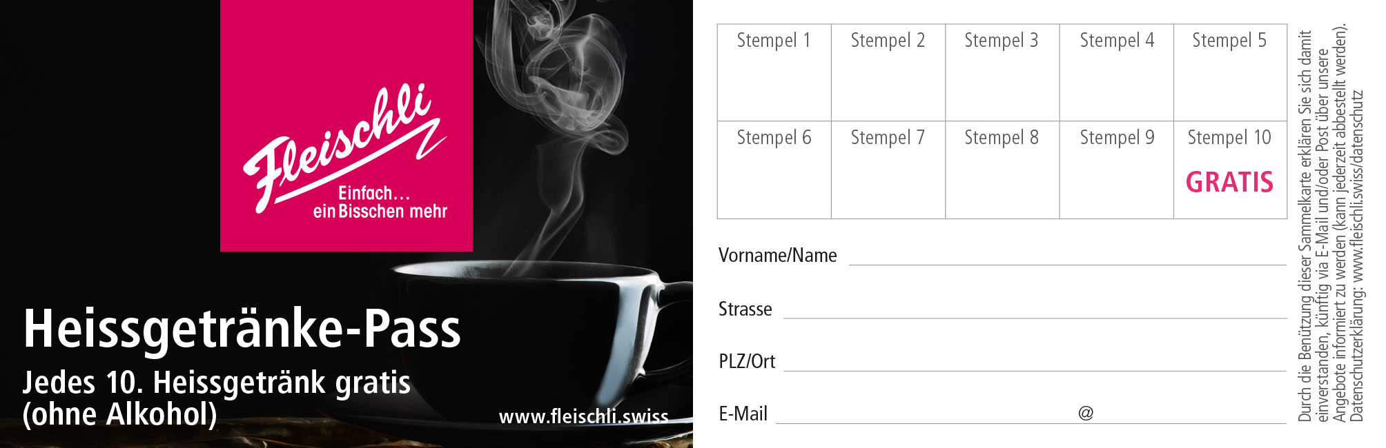 Kennen Sie unsere Kunden-Pässe? Jedes 10. Heissgetränk (ohne Alkohol) oder jede 10. Glace ist gratis. Stempel sammeln und profitieren!