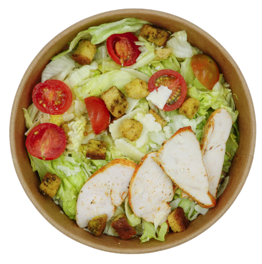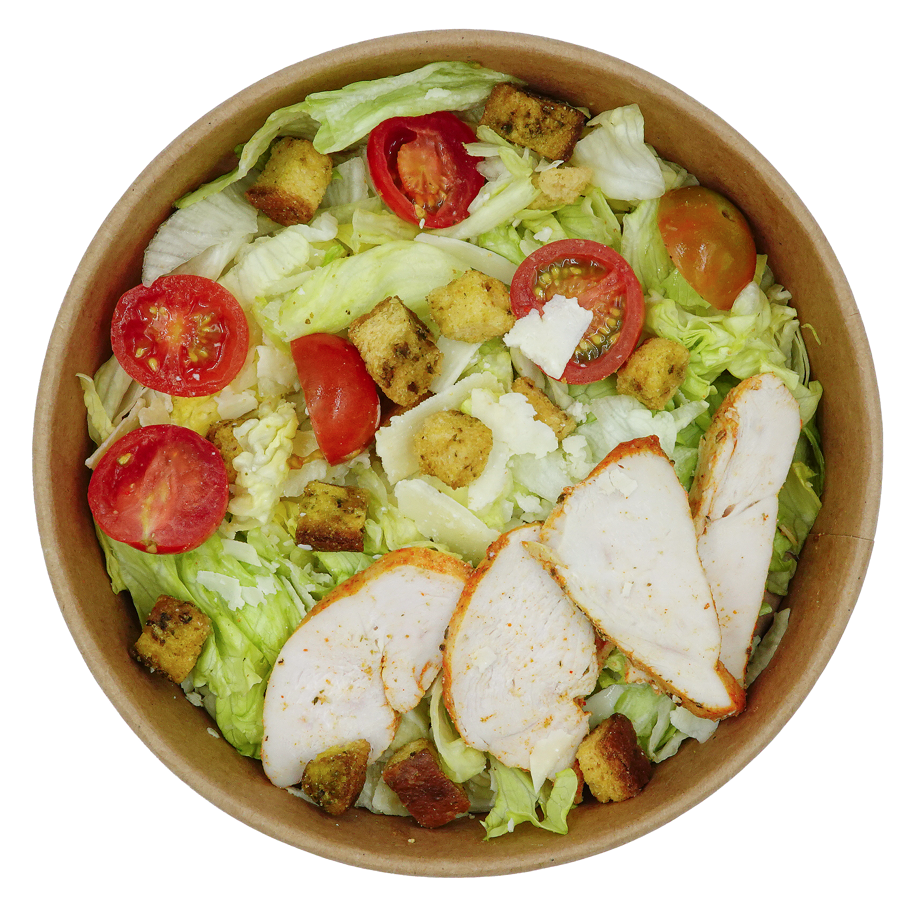 Eisbergsalat (54.5 %), Pouletfleischzubereitung (Pouletbrust CH, Kochsalz, Gewürze, Kräuter, Geschmacksverstärker E621, Sonnenblumenöl) (25.0 %), Tomaten, Parmino CH (Hartkäse, aus ROHMILCH) (6.8 %), WEISSMEHL (WEIZENMEHL, WEIZENGLUTEN, GERSTENMALZMEHL, Mehlbehandlungsmittel E300), Wasser, HALBWEISSMEHL (WEIZENMEHL, WEIZENGLUTEN, GERSTENMALZMEHL, Mehlbehandlungsmittel E300), Rapsöl, BUTTER CH, Hefe, MILCHBACKMITTEL (MILCHSERUMPULVER, Dextrose, BUTTERMILCHPULVER, WEIZENSTÄRKE, Butterfettfraktion), Backmittel (Wasser, Rapsöl, Emulgatoren E471 E481), Frischhaltemittel (Feuchthaltemittel E422, Säureregulator E262, Wasser, natürliches Vanillearoma), Alpensalz, Basilikum frisch, PINIENKERNE, Malzmischung (GERSTENMALZMEHL, WEIZENMEHL, GERSTENMALZMEHL geröstet, WEIZENPROTEIN), Knoblauch, WEIZENGLUTEN, Pfeffer
