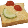 Toastbrot aus Schweizer Mehl mit Spargeln belegt. Mit Mayonnaise, Tomate, Salatgurken garniert und mit veganem Sulz glasiert.