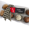 Luxuriöse Truffes, gefüllt mit cremiger Champagner-Ganache, umhüllt von zarter Schokolade und veredelt mit einem Hauch von Puderzucker.