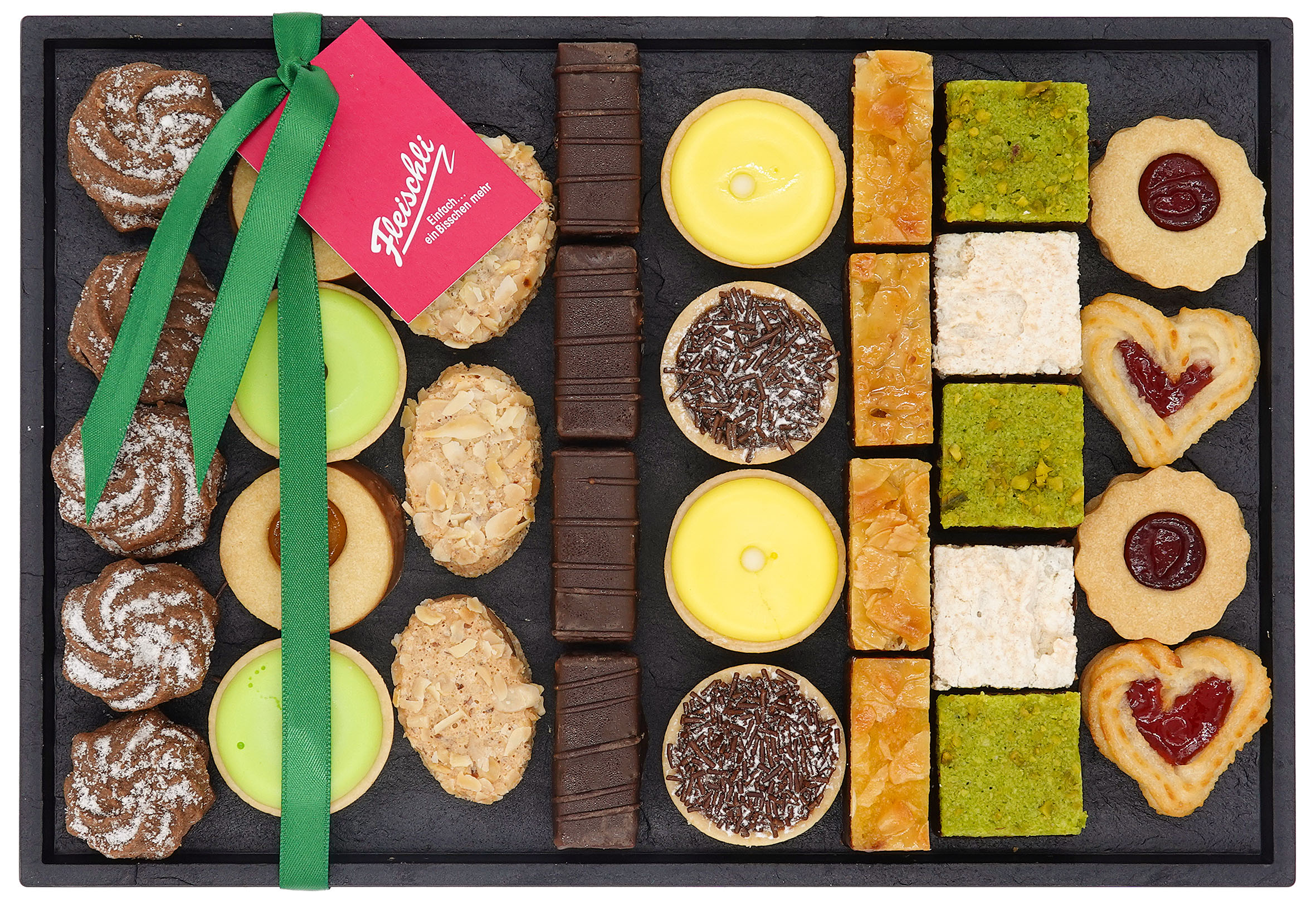 Inhalt Platte: 33 Stück. Unser hausgemachtes Konfekt-Sortiment umfasst zwölf verschiedene Variationen, welche in liebevoller Handarbeit kreiert werden.