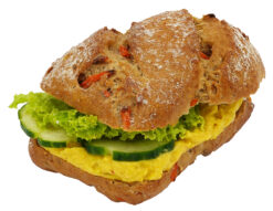 WEISSMEHL (WEIZENMEHL, WEIZENGLUTEN, GERSTENMALZMEHL, Mehlbehandlungsmittel E300), GREYERZERKÄSE CH (Hartkäse, aus ROHMILCH hergestellt) (23.4 %), Wasser, Salatgurken, Tomaten (5.8 %), BUTTER CH, MILCHBACKMITTEL (MILCHSERUMPULVER, Dextrose, BUTTERMILCHPULVER, Butterfettfraktion), VOLLEI CH, Brezelsalz (Reismehl, Speisesalz, gehärtetes pflanzliches Fett (Raps), Rapsöl), Natronlauge, Alpensalz, Hefe, Backmittel (WEIZENPROTEIN, WEIZENMEHL, Dextrose, GERSTENMALZMEHL, Enzyme, Mehlbehandlungsmittel E300, Bio Acerolapulver), GERSTENMALZ