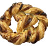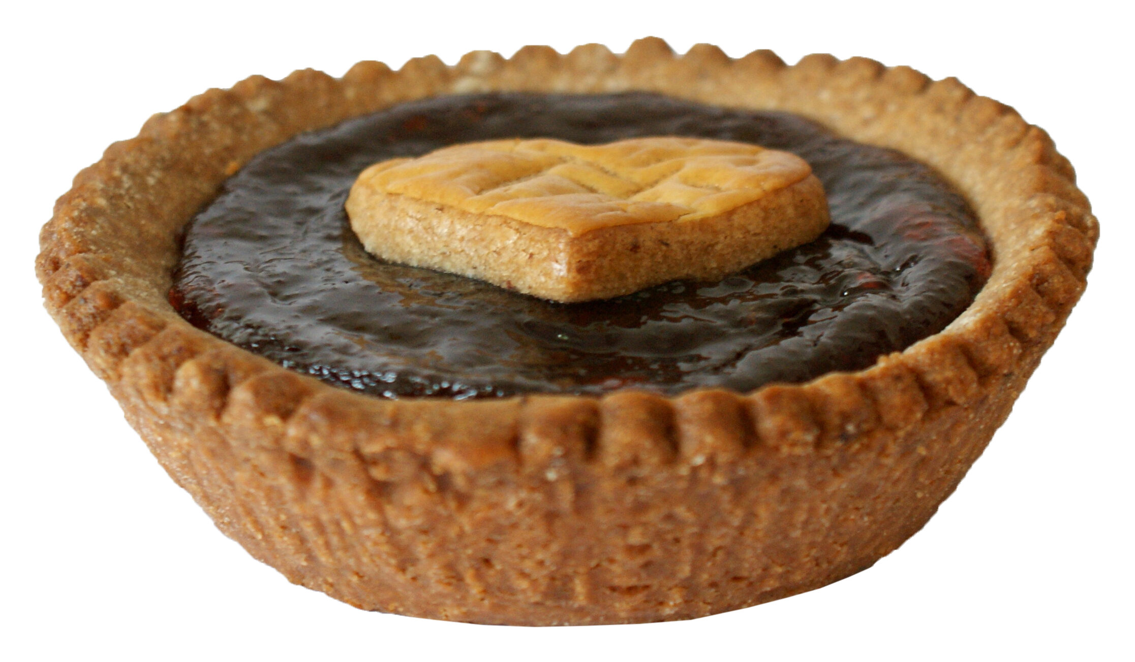 Hausgemachter Mürbeteig mit einer aromatischen Haselnussfüllung, verfeinert mit Himbeermarmelade.