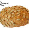 Das Brötchen besteht aus Graham- und Weissmehl und wird mit unserem hauseigenen Sauerteig angereichert. Es reift dabei ca. 24 Stunden und wird mit einer Körnermischung aus Sonnenblumenkernen, Leinsamen, Sesam und Kürbiskernen verfeinert.
