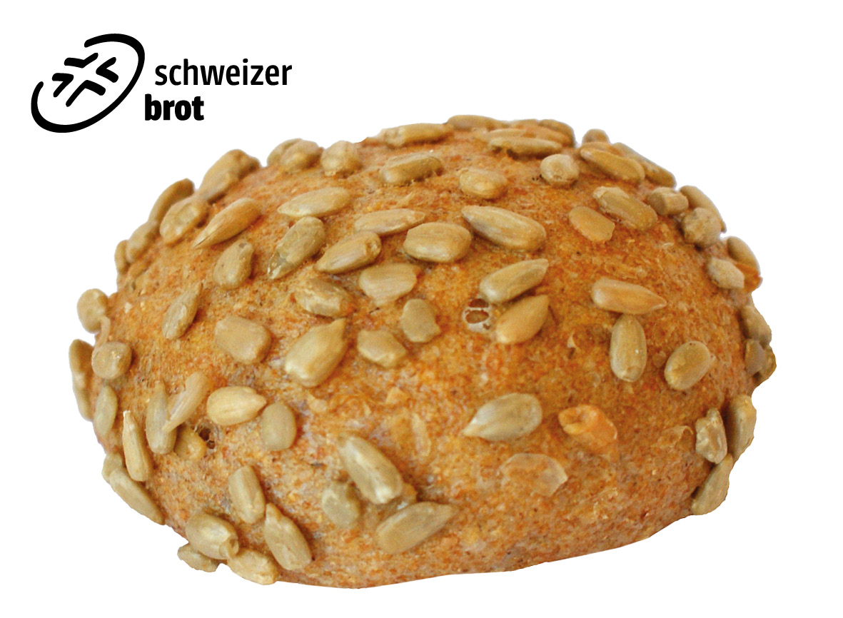 Graham-Weissmehlbrötchen, welches mit Sonneblumenkernen verfeinert wird.