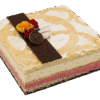 VOLLRAHM CH, VOLLEI CH, Wasser, Couverture MILCH (Zucker, Kakaomasse, Kakaobutter, RAHMPULVER, MAGERMILCHPULVER, Emulgator SOJALECITHIN, Vanille) Kakao mind. 49% (8.6 %), Biscuitmischung (Zucker, WEIZENMEHL, WEIZENSTÄRKE, Glukosesirup, Backtriebmittel (E450, E500), Emulgatoren (E472b, E475), MAGERMILCHPULVER, Speisesalz, Feuchthaltemittel E420), Zucker, Kakaokerne (5.7 %), JOGHURT, Orangensaftkonzentrat (3.7 %), EIGELB CH, MILCH CH, Couverturedecor (enthält SOJA, MILCH), Gelee (Wasser, Zucker, Glucosesirup, Geliermittel E440, Säuerungsmittel E330, Säureregulator E331, Konservierungsmittel E202, Aroma), Glasurmasse dunkel (Zucker, Kokosöl, Kakaopulver, Sheabutter, Illipebutter, Emulgator SOJALECITHIN), EIWEISS CH, BUTTER CH, Früchtemix variabel (Physalis, Erd-, Him-, Blau-, Johannisbeeren), Speisegelatine (Schwein), Orangensaft (0.6 %), Kakaopulver, Grand Marnier 40% vol., Glucosesirup, Backmarmelade Aprikose (mit Aroma), Farbstoffe (E104, E124, E122, E102, E172, E129)