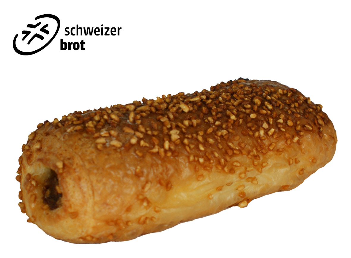 Luftiger Gipfelteig, gefüllt mit geschmolzenem, hausgemachtem Branchli und bestreut mit Krokant.