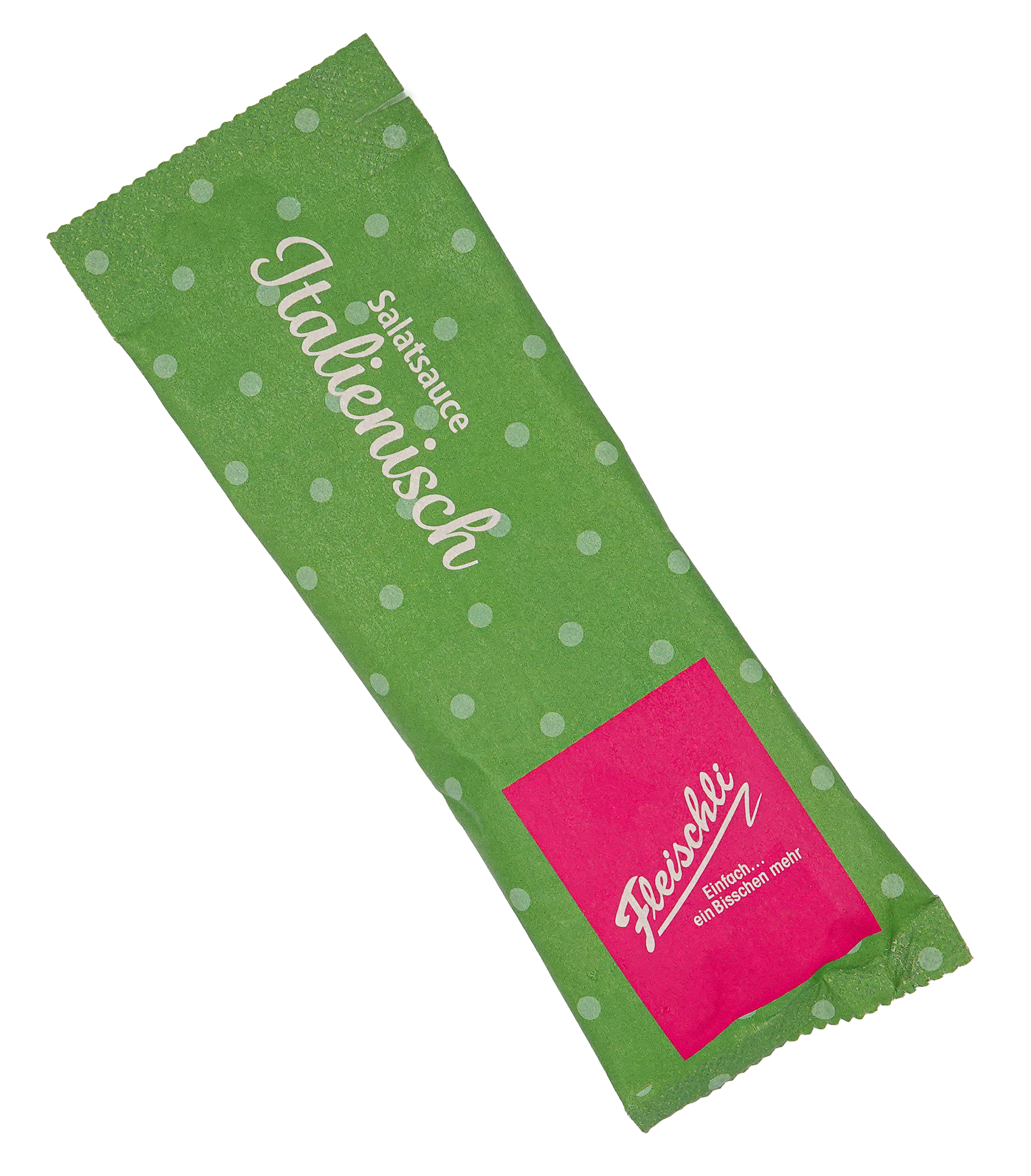 Italian Dressing (Sonnenblumenöl, Wasser, Rotweinessig, Rotwein (enth. Konservierungsstoff SCHWEFELDIOXID), Tafelessig, SENF, Speisesalz jod., Zucker, Gewürze, Karamellzucker, Holunderbeersaftpulver, Verdickungsmittel (E415, E412))