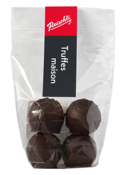 Frischrahm-Truffesmasse mit dunkler Couverture, mit Kirsch (Alkohol) aromatisiert